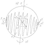 要實(shí)現(xiàn)正弦波研磨軌跡,可以根據(jù)研具和工件的相對(duì)運(yùn)動(dòng)關(guān)系來實(shí)現(xiàn)。將研具和工件的相對(duì)運(yùn)動(dòng)分解為3個(gè)運(yùn)動(dòng),即研具的轉(zhuǎn)動(dòng)n1、雙偏心半球閥閥芯的轉(zhuǎn)動(dòng)n2和閥芯的擺動(dòng)n3。為使研具在研磨中有較好的嵌砂性能,將研具放在工件的下面,如圖1(a)所示。當(dāng)閥芯按正弦波規(guī)律擺動(dòng)時(shí),磨粒軌跡為類似于振動(dòng)衰減的正弦波,如圖1(b)所示。若閥芯只作正弦波規(guī)律往復(fù)擺動(dòng),其磨削、磨損、去除材料量等產(chǎn)生嚴(yán)重不均勻,雙偏心半球閥閥芯的面輪廓度、表面粗糙度就很難達(dá)到均勻一致,不能滿足要求。為解決此問題,讓閥芯有一轉(zhuǎn)速n2,不斷變動(dòng)其自身位置,以保證整個(gè)球面的研磨、磨損等達(dá)到均勻一致,研磨軌跡如圖1(c)所示。